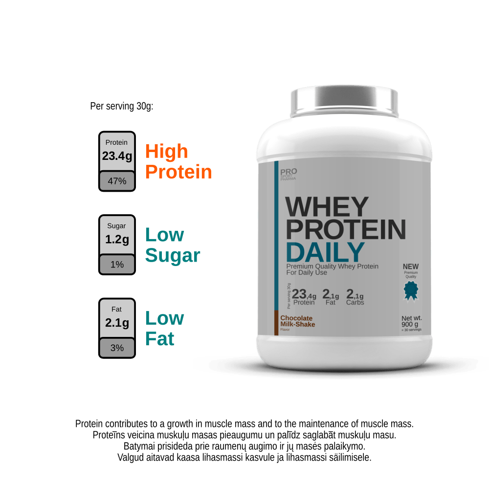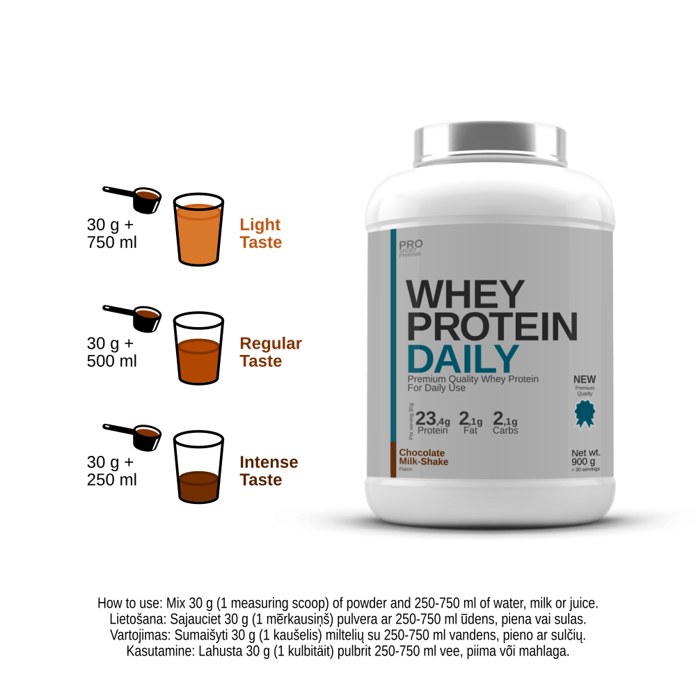 WHEY PROTEIN DAILY — PAGAMINTA EUROPOS SĄJUNGOJE pagal ProSportPharma® užsakymą.