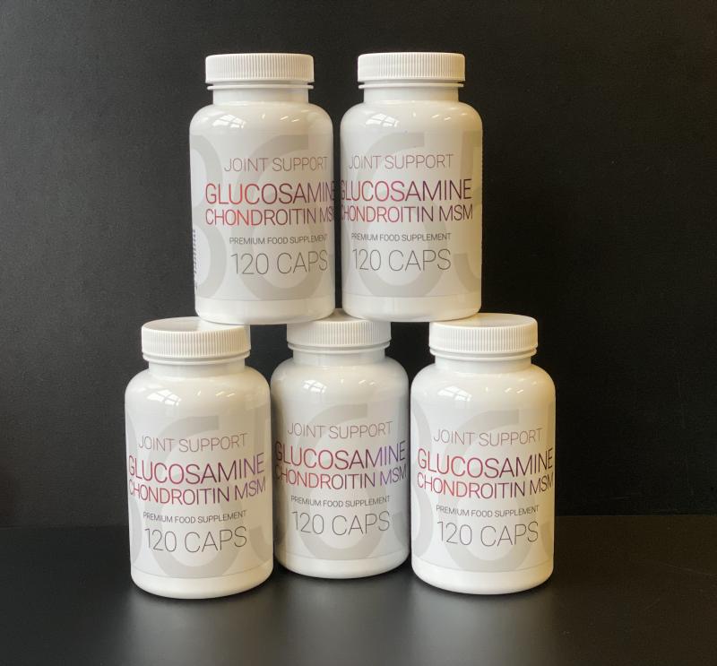 | Sastāvdaļas: glikozamīna sulfāts KCl, hondroitīna sulfāts, metilsulfonilmetāns, kolagēns, pretsalipes vielas taukskābju magnija sāļi. |
